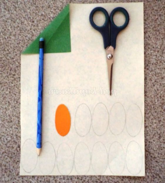 5.Изготавливаем кактус. На лист зеленого паперу прикладаємо шаблон (овал), обводимо і вирізаємо. (на одну частину кактуса необхідно зробити чотири овалу)