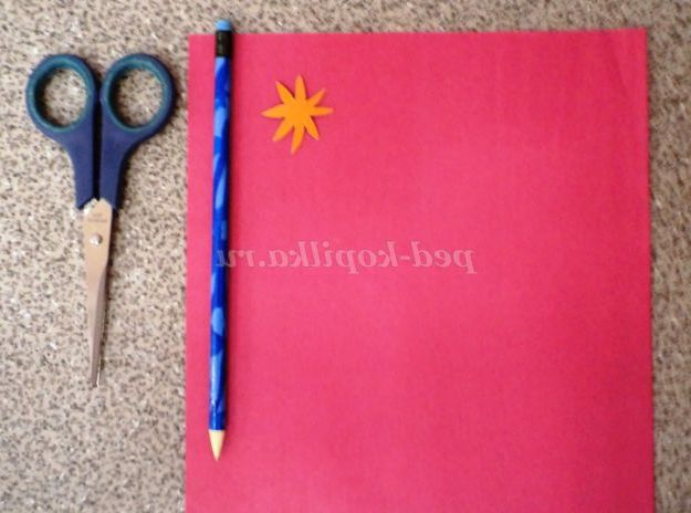 10.Изготавливаем квітка у кактуса. На кольоровий папір прикладаємо шаблон квіточки, обводимо олівцем і вирізаємо. Кількість кольорів не обмежено.
