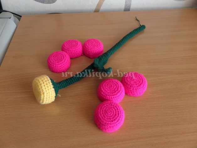 Так обв'язати треба ще 5 кришок рожевим кольором і 1 жовтим кольором.