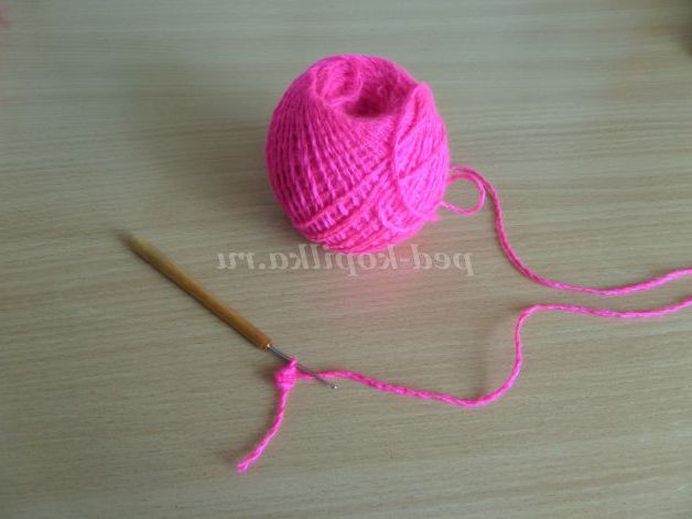 6. Починаємо обв'язувати пластмасову трубочку. Набираємо 10 повітряних петель і стуляємо в кільце.
