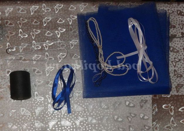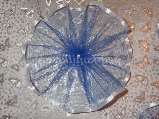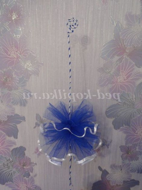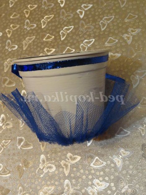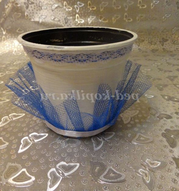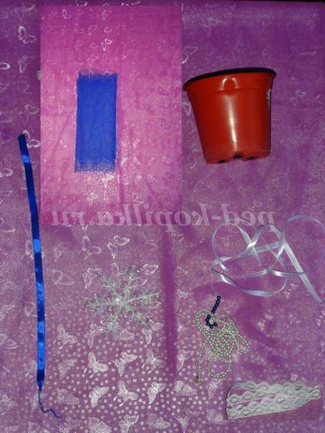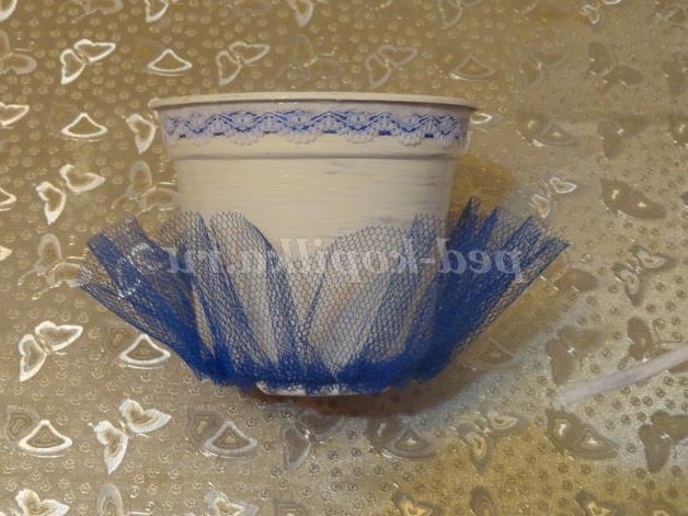 У підстави горщика поверх фатину, міцно перев'язуємо білою тасьмою