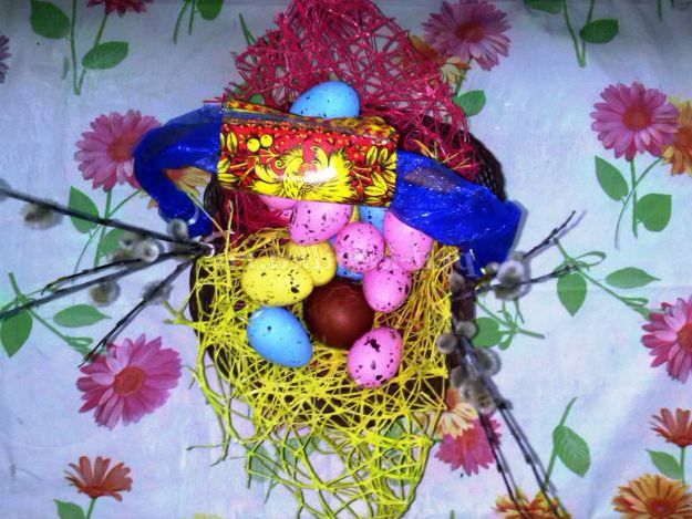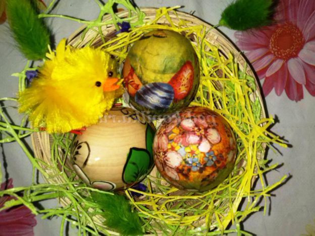 А ось і крашанки: зелені, червоні, жовті, прикрашають їх квіти з листочками.