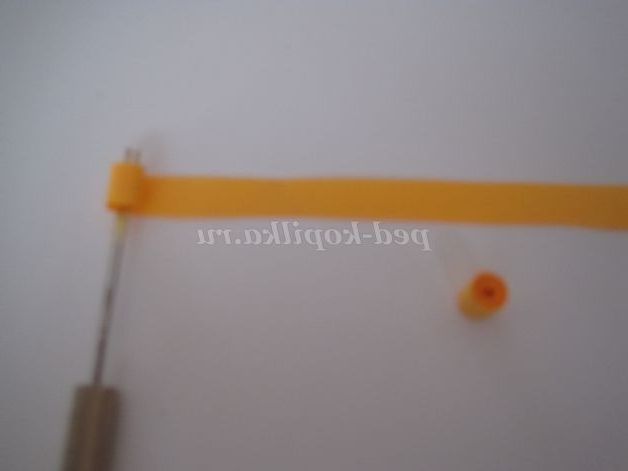 На рол починаємо накручувати періодично підклеюючи середину, смужку шириною 2 див. Кінець смужки підклеюємо з інструменту не знімаючи.