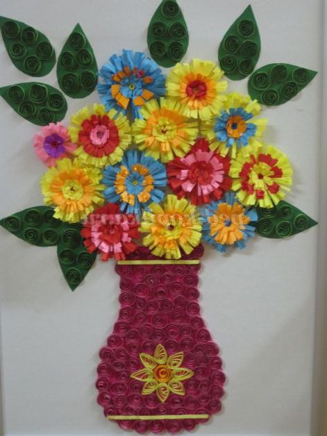 Приступаємо до створення картини. Наклеюємо вазу, квіти і листя. Ось така картина у нас вийшла.