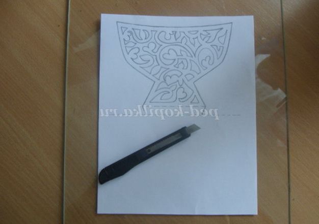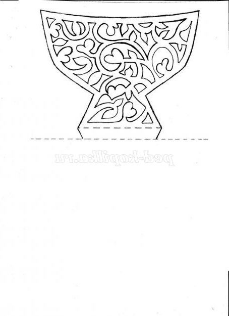 Коли вся ваза вирізана, згинаємо по штрихам, визначаємо дно вази для стійкості.
