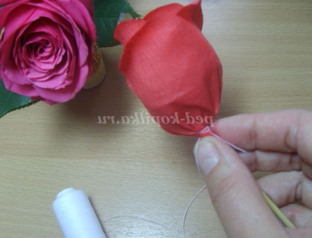 Зібравши біля основи, закріпити клеєм і ниткою.