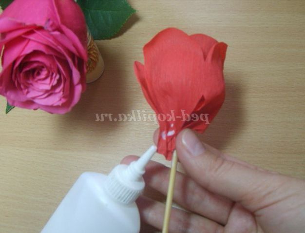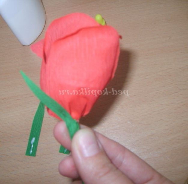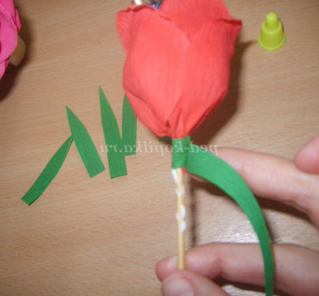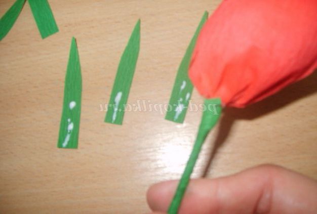оберніть смужку навколо шпажки змазані клеєм і приклейте листочки.