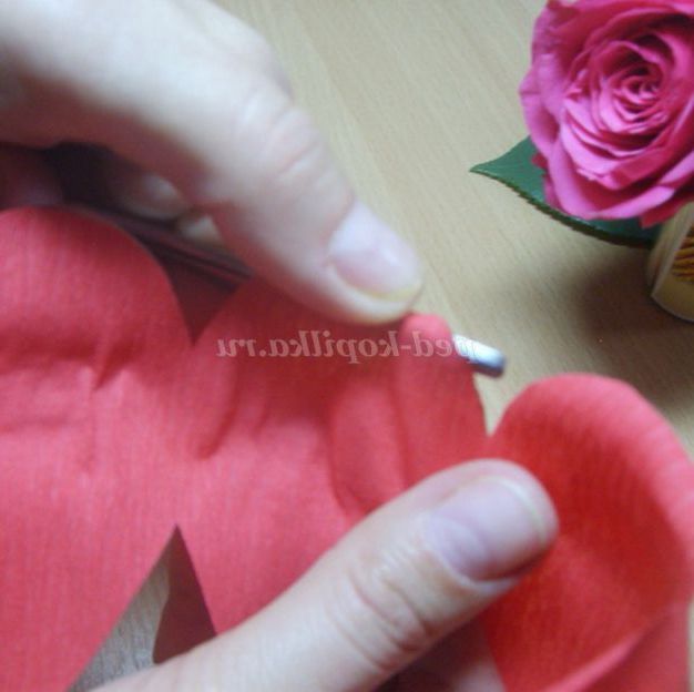 Верхній край пелюсток накрутити за допомогою ножиць або шпажки для барбекю.