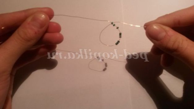 1) Відрізаємо дріт (довжиною 24см.) і нанизуємо на неї 9 бисеренок.