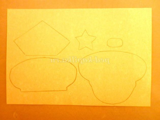 1. Підготувати шаблони тулуба, голови, безкозирки, тільники, зірочки і пряжки на ремінь.