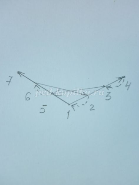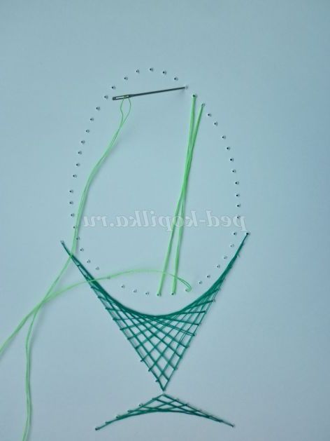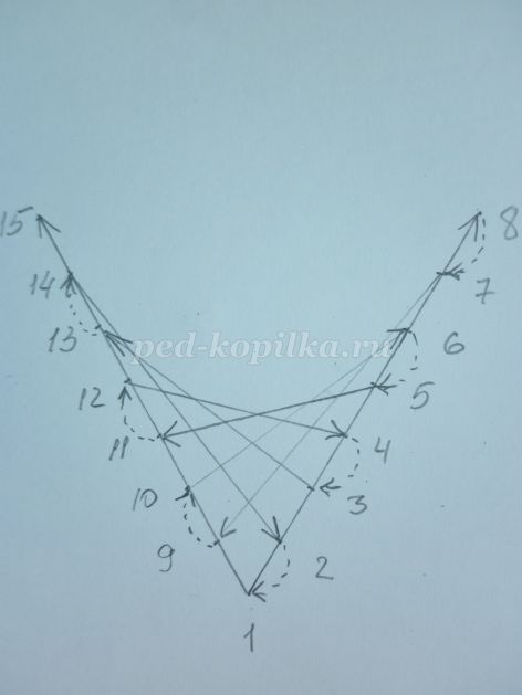 Приступаємо до зображення гострого кута изонитью по схемі. Почати можна з будь-якого боку. На малюнку початок показано з правого боку.