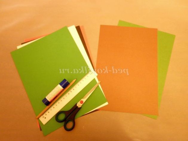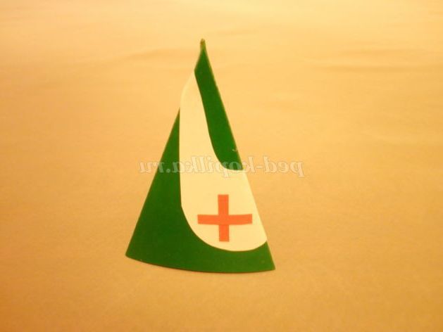 3. З паперу зеленого кольору, так само за допомогою шаблону, вирізати 2 деталі пілотки.