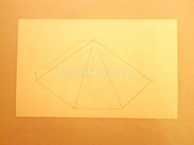 10. Із зворотного боку заготовки прокреслити кінчиками ножиць по лініях згину (так легше буде скласти) і склеїти піраміду.