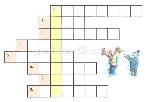 Демонстраційний матеріал: Ілюстрації «пори року», сніжинки, сніговик, кросворд, «сніжок», картки зі словами для гри «Третій зайвий», музика для релаксації (звуки бубенчиков) і звуки завывающего вітру.