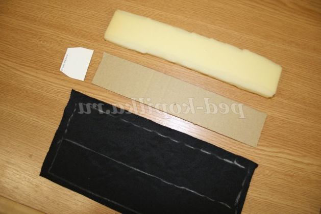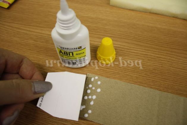 2) Вирізаємо з тонкого картону язичок, смугу з поролону такої ж ширини й довжини, що і смуга з картону.