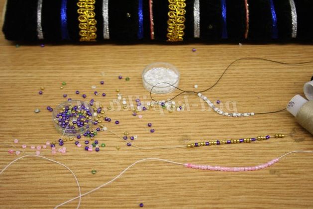 10) Добре виглядає бісер, нанизані на нитку чи можна нашити її на стрічку.