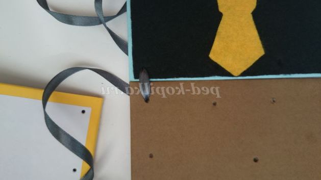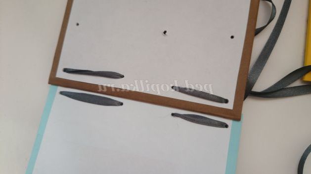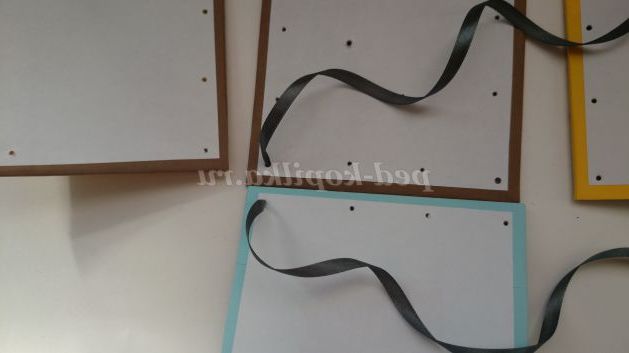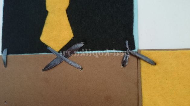 11) Потім паралельно пропускаємо стрічку у слід. отвори (по друге). У третій отвір стрічки треба перехрестити. В четверте - паралельно і зав'язати вузлик.