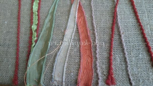 7) Потім пришиваємо готові травинки великими стібками по середині. Колір ниток може відрізнятися.