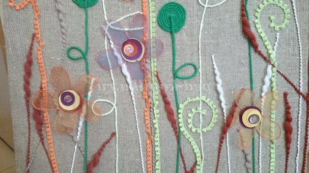 Панно з тканини і пряжі «Квітуча галявина». Майстер-клас з покроковим фото