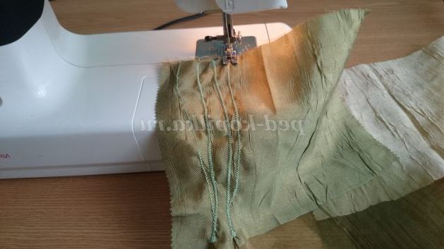 4) Тепер нам потрібна трава. Її ми будемо робити з тканини. Знадобиться швейна машинка. На тканини малюємо травинки різного розміру і проходимо по лінії малюнка швом «зигзаг».