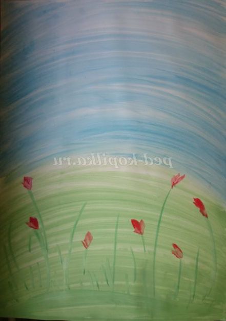 2) На нижній частині ватману можна намалювати травичку і квіточки.