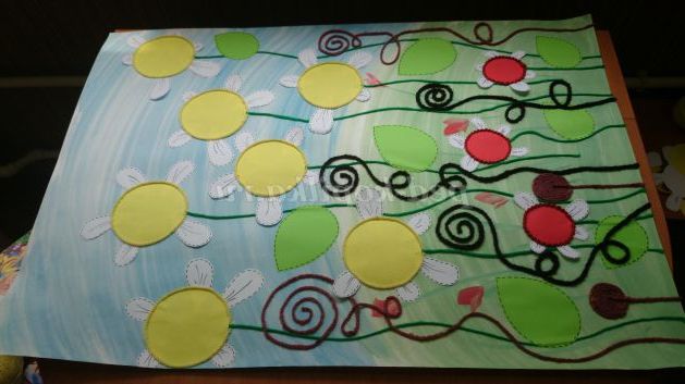 8) У нижній частині плаката, де є порожні місця, можна приклеїти три квіточки за тією ж технологією, що описано вище.