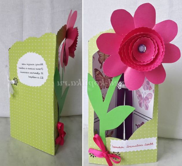 Об'ємне конструювання з паперу листівки на 8 березня «Аленький цветочек». Майстер-клас з покроковими фото