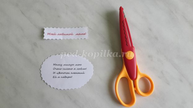 - Можна прикрасити листівку, приклеївши вірш для мами.