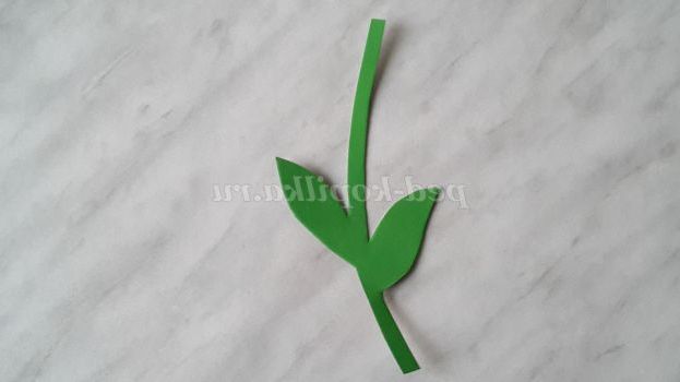 - З картону зеленого кольору, згідно шаблону вирізаємо стебло з листочками.