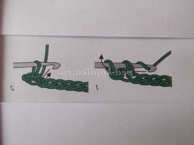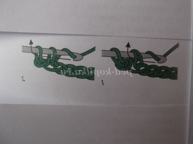 Зробіть накид і введіть гачок у петлю попереднього ряду (або ланцюжка з повітряних петель). Захопіть робочу нитку і протягніть її через петлю, утворюючи нову петлю . На гачку вийшло три петлі. Після цього знову захопіть нитку і протягніть її через дві перші петлі на гачку, утворюючи одну нову петлю . Знову візьміть нитку і протягніть її через щойно утворену петлю і петлю, що залишилася на гачку.