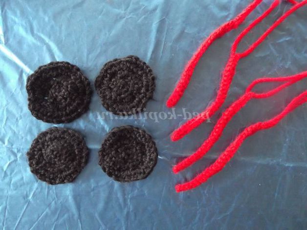 Наберіть пряжею чорного кольору 6 в.п. Замкнути ланцюжок в кільце за допомогою соед. ст.и в'яжіть по колу: