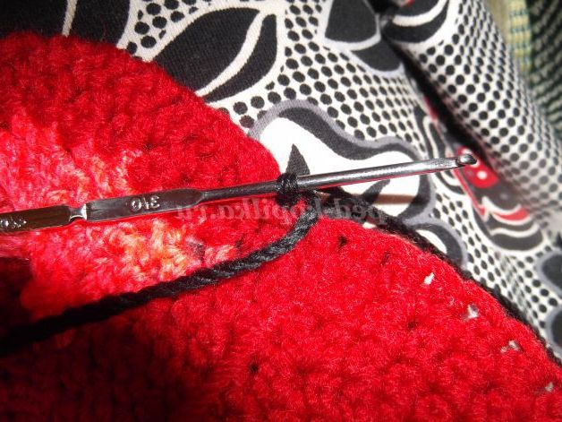 Пряжею чорного кольору наберіть 10 в.п. і, починаючи з другої петлі від гачка, в'яжіть: