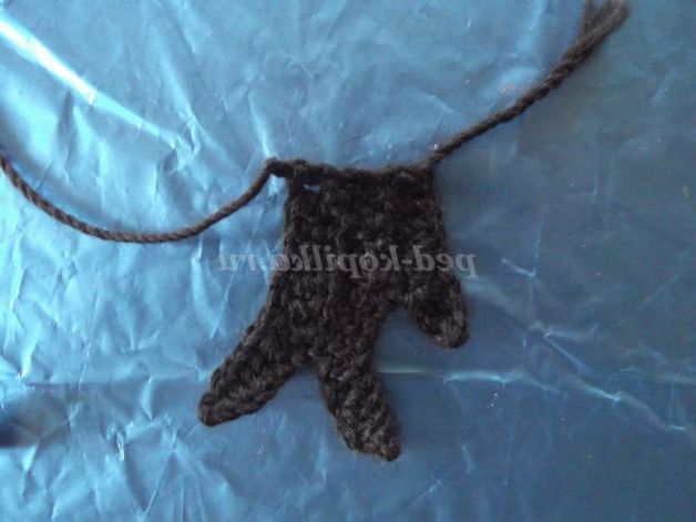 9 ст.б/н на бічній стороні вуха, в одну петлю вершини вуха - 1 ст.б/н, 1 ст.б/н, далі 8 ст.б/н на бічній стороні вуха, уб., 1 ст.б/н, 20 в.п. (петлі)