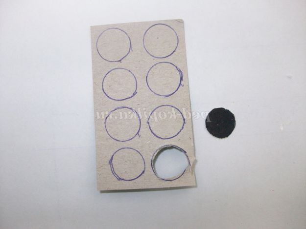 З чорного картону вирізаємо 8 кружечків (обвести копійку).