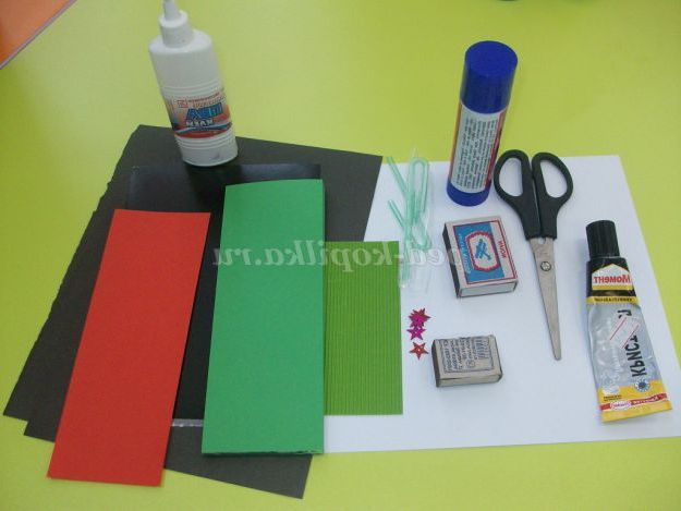 Приклеюємо зірочки( можна з картону червоного кольору) з двох сторін.