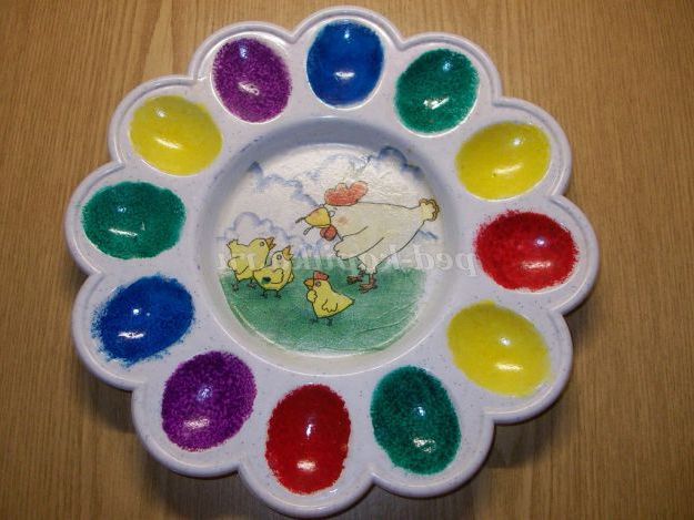 Я сама захоплююся декупажем . І до Великодня прикрасила ось таку підставку для паски і яєчок.