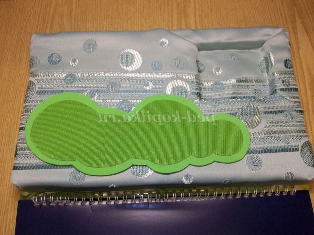 З зеленого гофрованого картону і зеленої декоративної пінки вирізаємо острівець і приклеюємо.