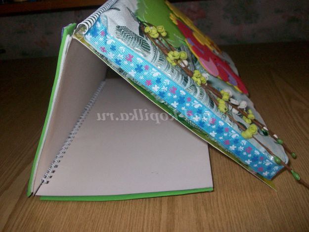 За допомогою двостороннього скотча приклеюємо основні деталі. Потім гілочки верби. І оформляємо верхню частину календаря - розкладачки.