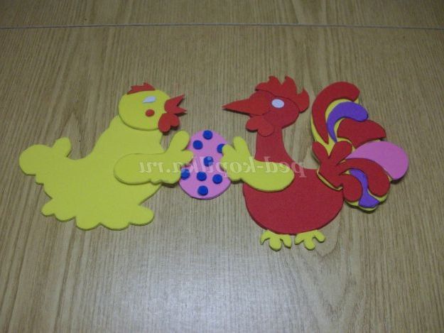 З декоративною пінки за шаблоном вирізаємо півника і курочку.