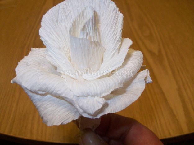 Беремо шпажку і накручуємо на неї цей край, стискаємо папір. Це добре фіксує вигин пелюстки. Для опуклого ефекту необхідно кожна пелюстка витягнути вглиб. Використовуємо два великих пальці наших рук.