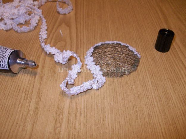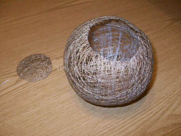 Прибираємо голку. Далі намотуємо нитку, просочений клеєм, досить щільно. Щоб карета вийшла овальної форми, акцент робимо на бічні сторони.