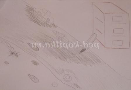 - Та як же його зловиш? Налітає він на місто темної - претемной вночі, коли всі люди сплять і починає свою брудну справу. Кожна голова чуда-юда витворяє таке, що вам і не снилося: Одна голова розкидає сміття, друга голова, дихає на місто смогом, а третя голова вивергає радіацію. Тепер місто перетворився на страшне місце, де неможливо жити. Городяни можуть по вулиці ходити тільки в масках, півдня пробули ми в місті, всіх справ зробити не встигли і скоріше звідти виїхали, щоб залишитися живими, а то очі щипає, руки сверблять і кашель забиває. Не поїдемо більше в місто і іншим не радимо.