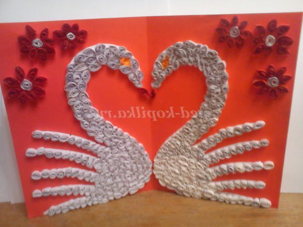 В День Святого Валентина прийнято вітати своїх улюблених і дарувати їм подарунки. Зробимо подарунок своїми руками для своїх дорогих людей. Подаруємо їм листівку, на якій зображені лебеді.