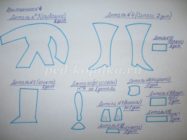 -приклеимаем до переднього профілю манжети,воротник.пояс,пряжку,долоньки