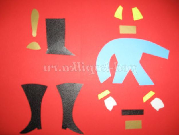 -за допомогою шаблону обводимо на чорному папері два чобота і вирізаємо