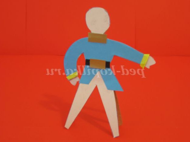 Педагог перевіряє готовність дітей до заняття,пригадують правила роботи з використовуваними матеріалами і инструментами.Обьясняет технологію виготовлення солдата(використання шаблонів),принцип виготовлення підставки неваляшки для солдата.