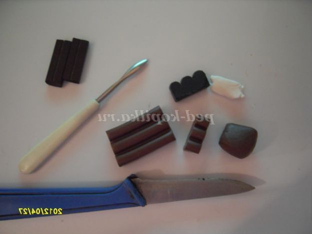 3. Беремо шматки коричневого і чорного кольорів, змішуємо між собою. До більш темного, однорідного кольору.