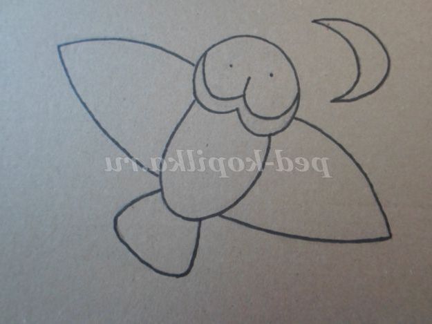 На картоні простим олівцем або фломастером намалювати сову.