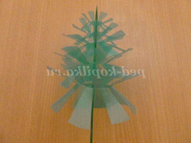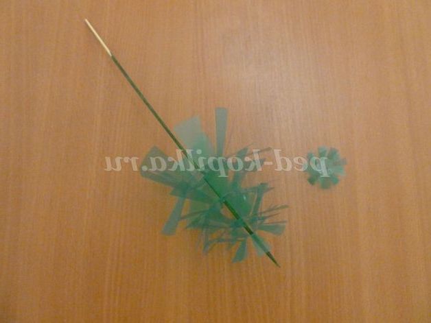 7.Наденем яруси на стовбур. Починаємо надягати з самого великого ярусу (матеріал тонкий, легко проткнет шпажкою).