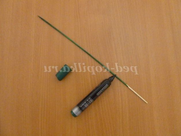 6.Раскрасим маркером дерев'яну шпажку в зелений колір. Вийшов стовбур ялинки.